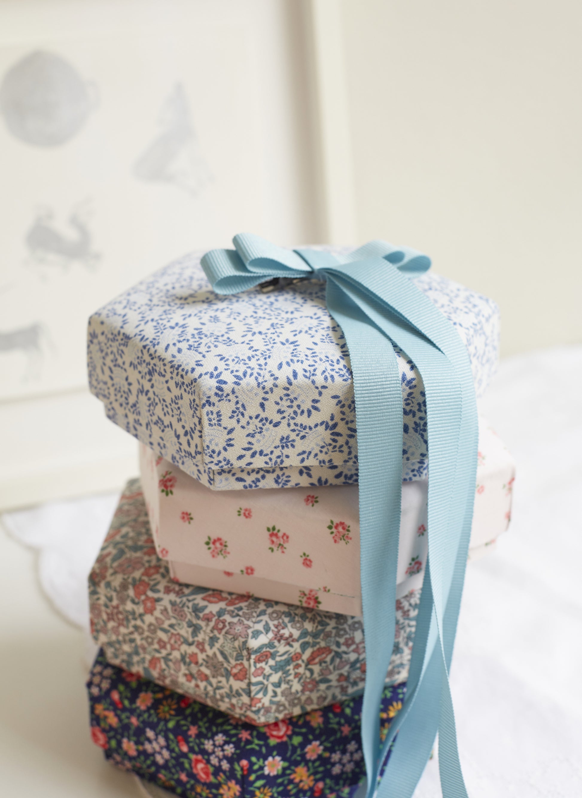Each Nachmans Keepsake box has been handmade by Cécilie Nachman in her Copenhagen studio. Each box is covered in a floral textile with contrasting inside. The perfect home for your small treasures.