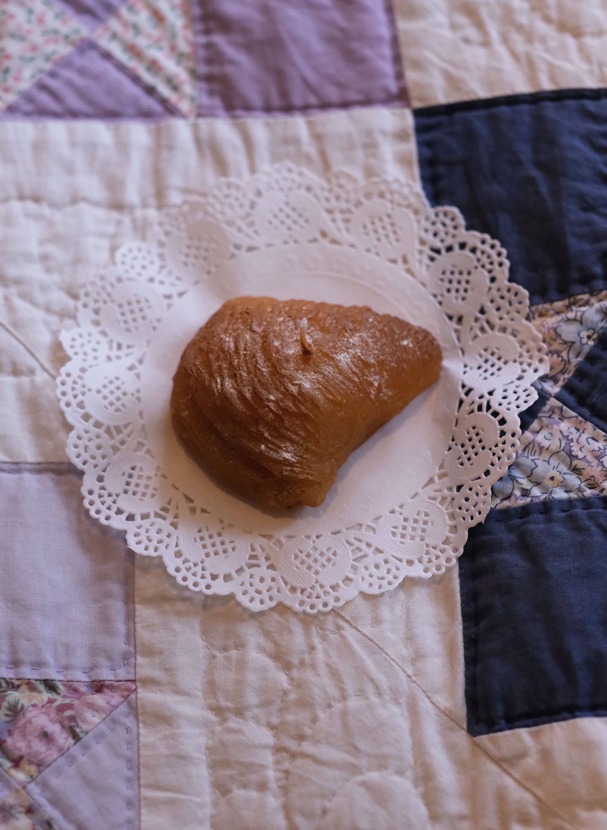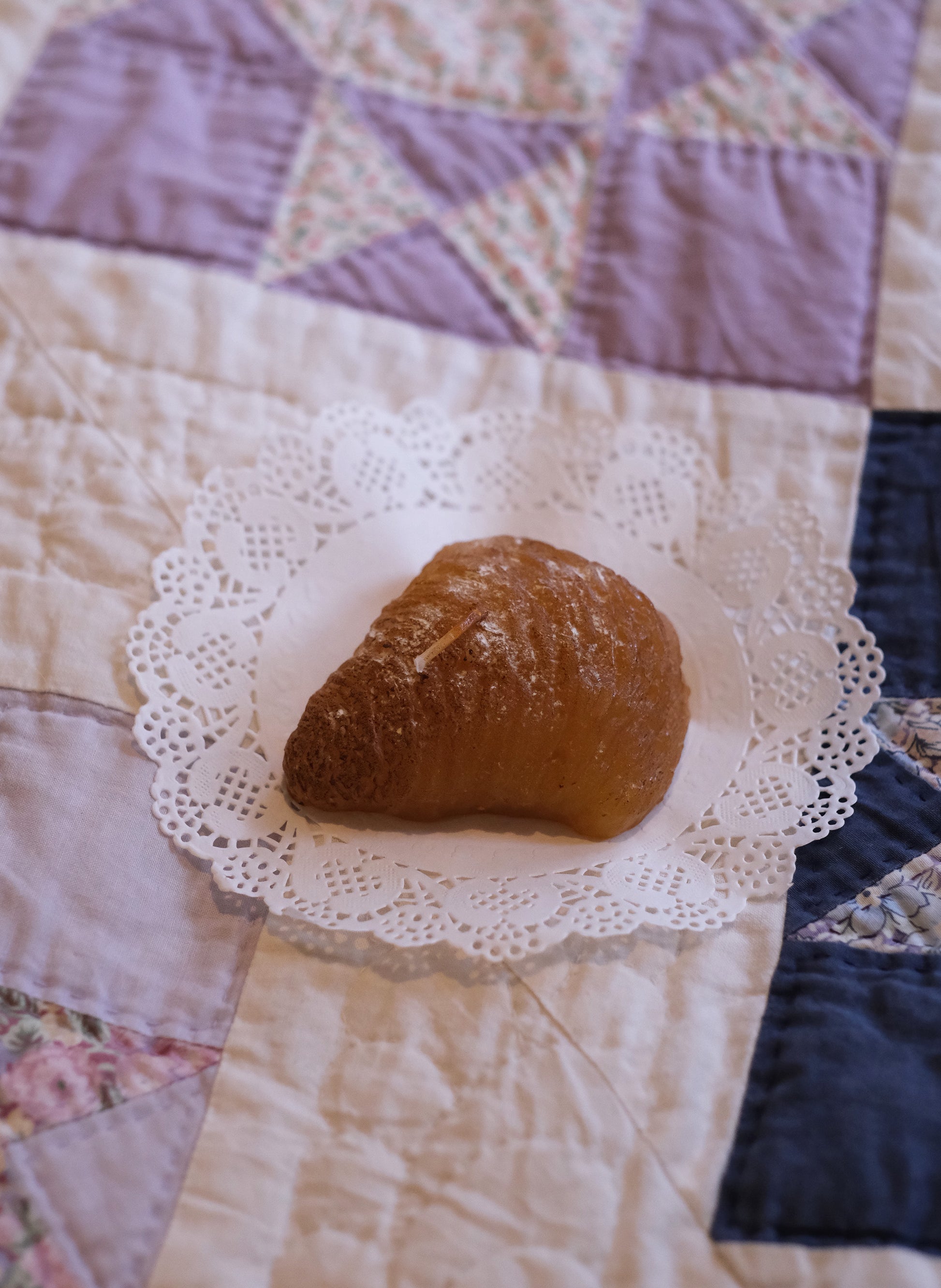 Beautiful and fun, trompe-l’œil candle from Italy, handcrafted to resemble a freshly baked sfogliatella pastry.