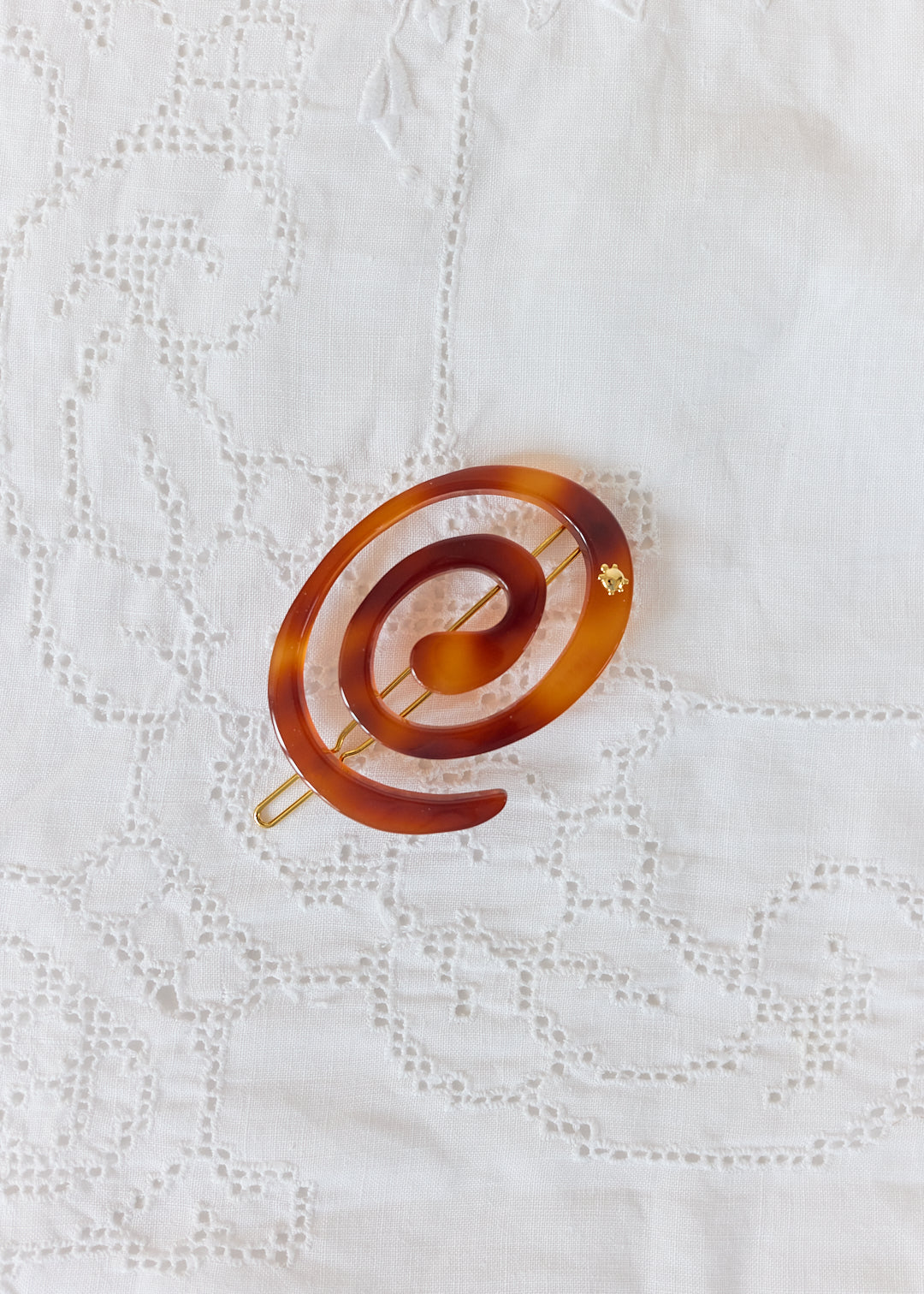 The perfect spiral hair clip from Turtle Story. Each piece is handmade from Italian cellulose acetate in their studio in Poland.
