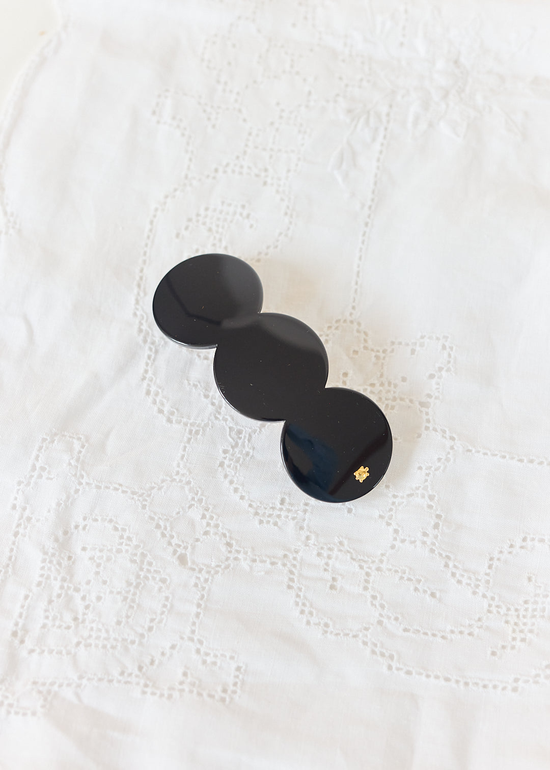The Triplet clip features a gold plated nickle-free barrette mechanism.